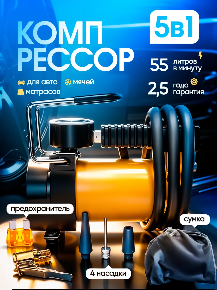 Автомобильный компрессор сэкономит Ваши время и нервы в дорожных ситуациях. Быстросъемный наконечник и встроенный манометр обеспечивают точный контроль давления, а компактный размер позволяет всегда иметь его под рукой в багажнике!