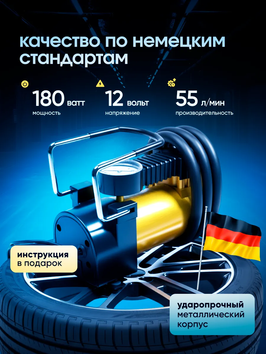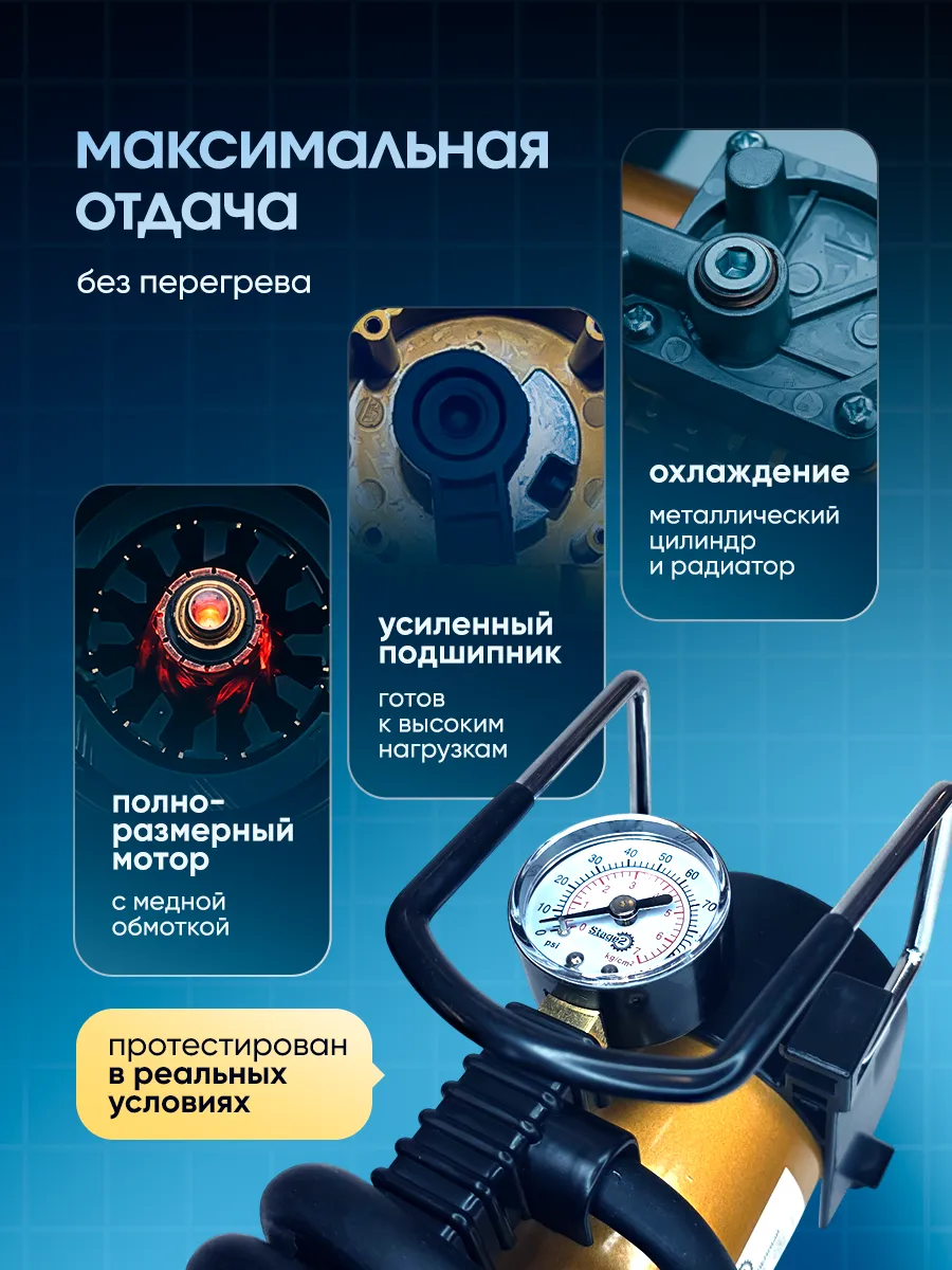 Пользуюсь уже несколько месяцев - работает безупречно! Особенно порадовала комплектация - есть все необходимые адаптеры и даже перчатки. Компактный, не занимает места в багажнике. Накачивает шины быстро, манометр показывает точно. Отличная покупка!