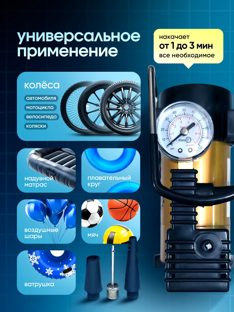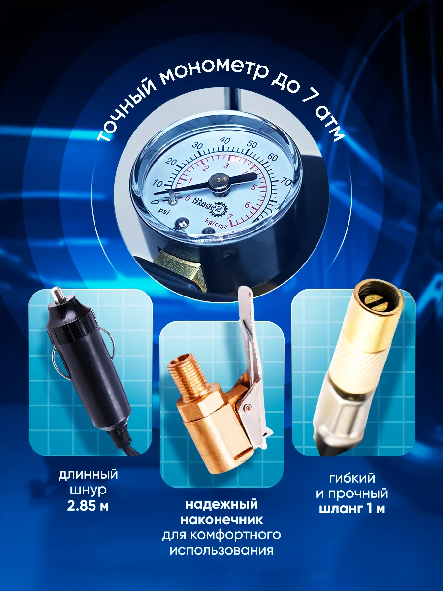 Мы предлагаем по-настоящему удобный и функциональный автомобильный компрессор: для быстрой накачки шин автомобиля, велосипедов и надувных изделий. Идеально подходит для экстренных ситуаций на дороге! Компрессор Stage2 - надежный помощник каждого автолюбителя!