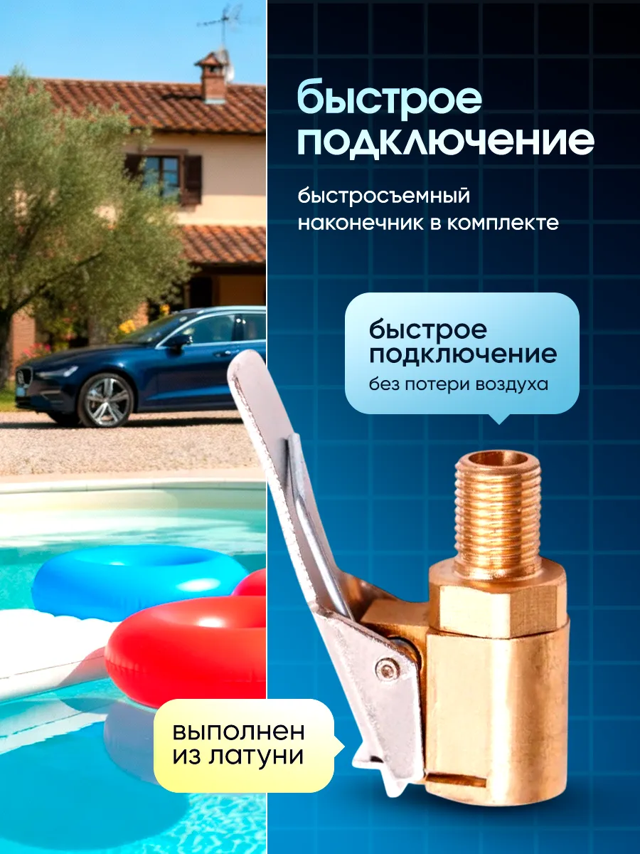 Отличный компрессор по доступной цене. Быстросъемный наконечник - это просто супер, подключение занимает секунды. Манометр точный, накачивает быстро. Всегда лежит в багажнике на всякий случай. Рекомендую каждому автолюбителю!